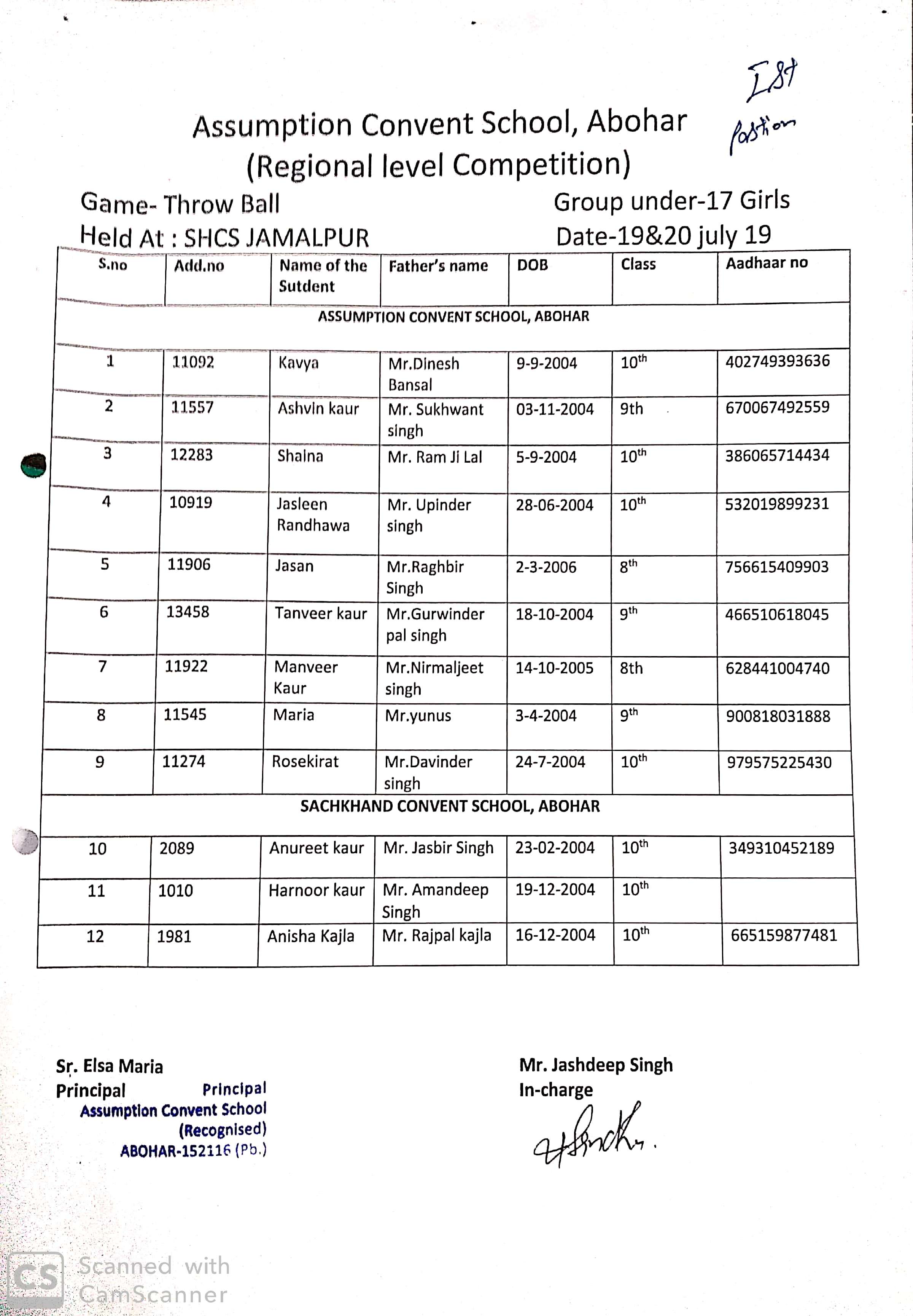 Group Under - 17 Girls